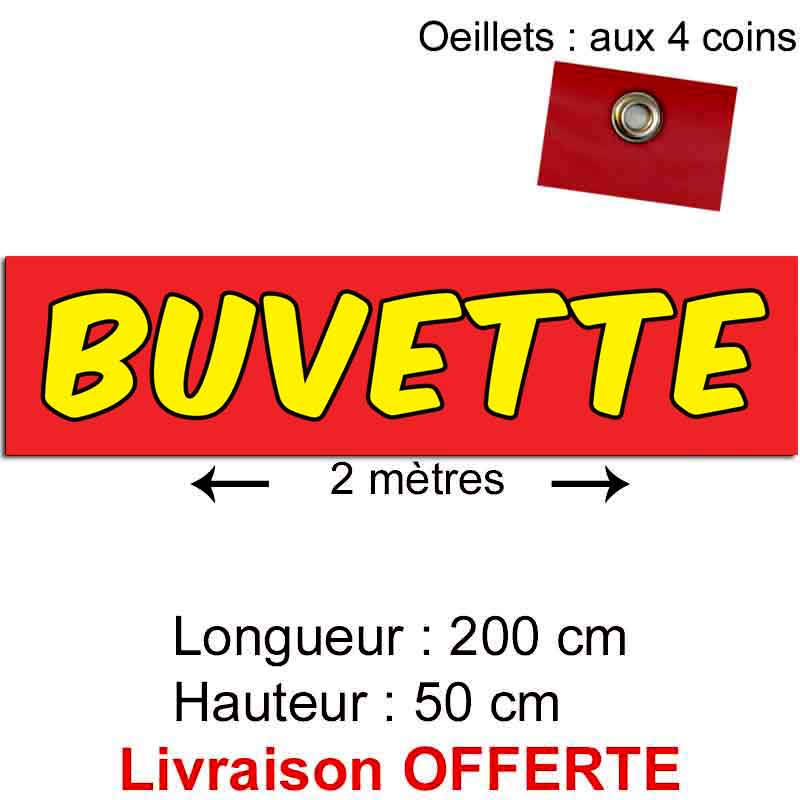 BANDEROLE BUVETTE 2 mètres x 50 cmIdéal pour votre buvette, pour vendre des boissons, vnete de boisson sur votre buvette etc…